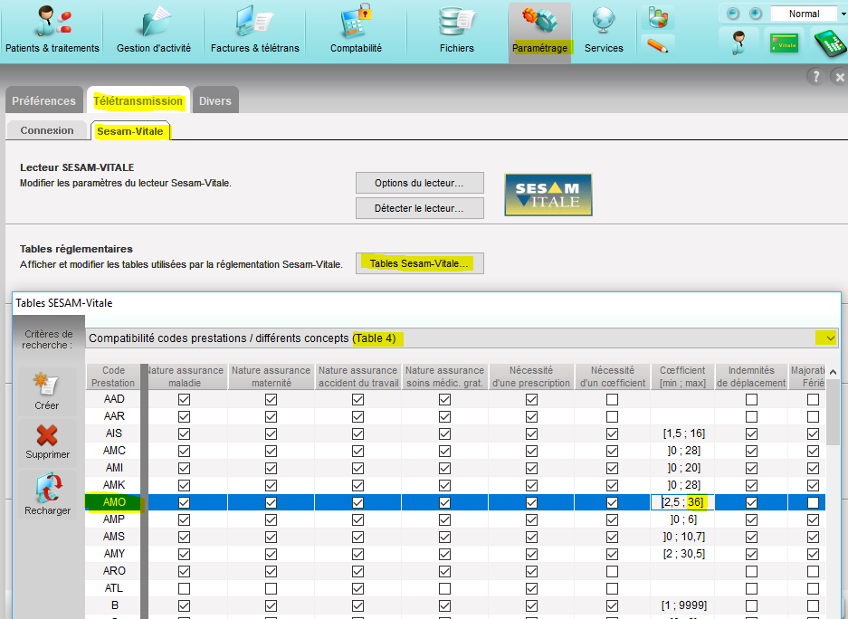 Sur certaines machines, suite à la dernière mise à jour, une erreur s’est introduite sur le coefficient maximum des actes AMO vous empêchant de facturer le bilan AMO 36.00.